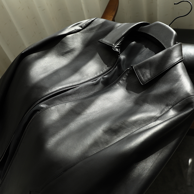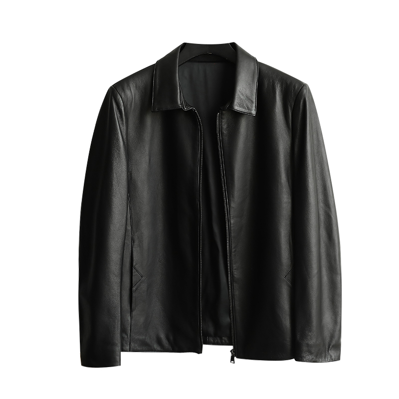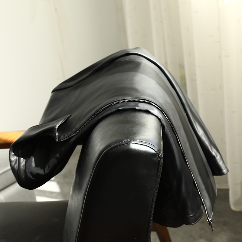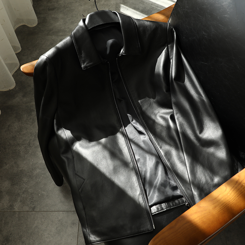 真皮材质,手感柔软舒适。翻领设计,修饰颈部线条。短款外套,拉长身材比例。
