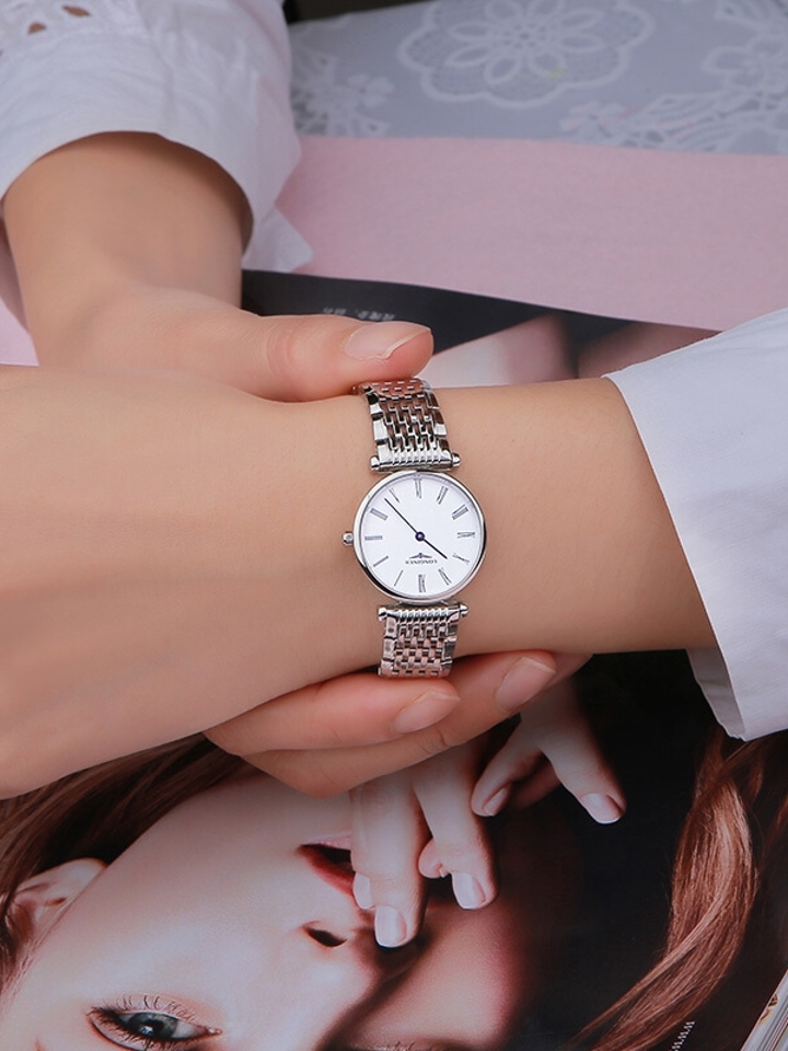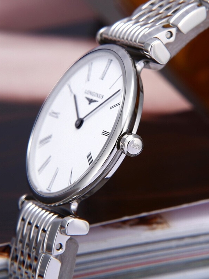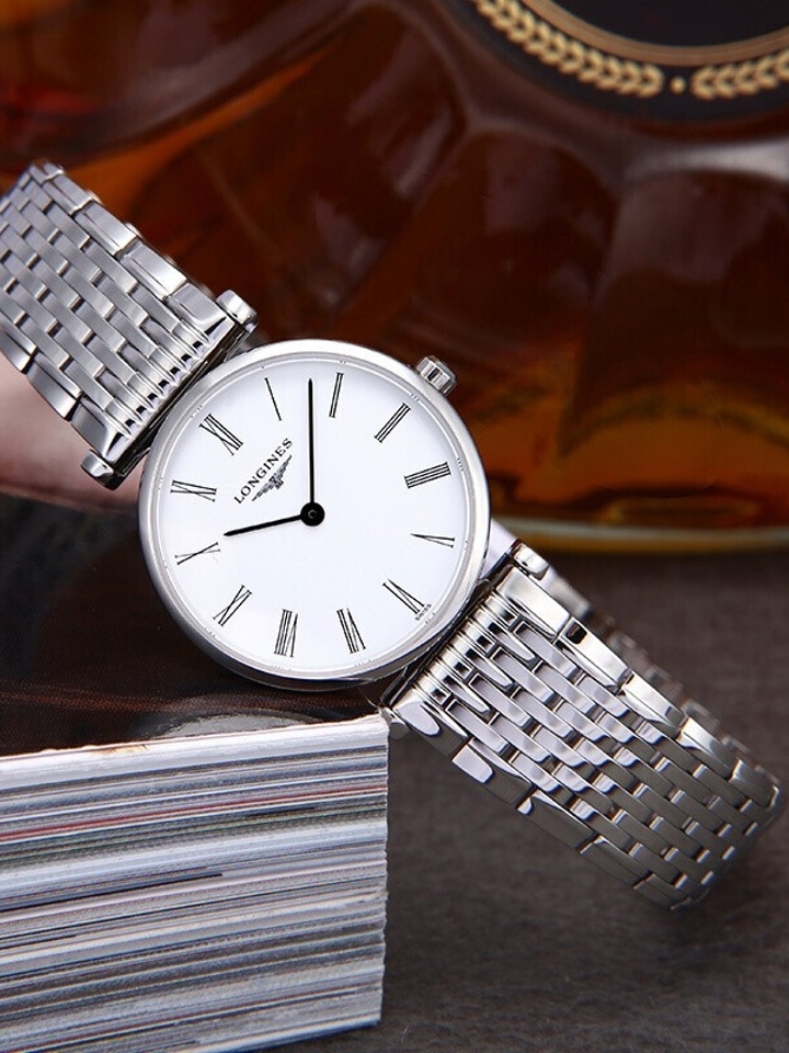 浪琴于1832年在瑞士索伊米亚创立,以飞翼沙漏为标志,以优雅著称于世。这款石英表采用罗马数字的表盘透露出一种复古的感觉。