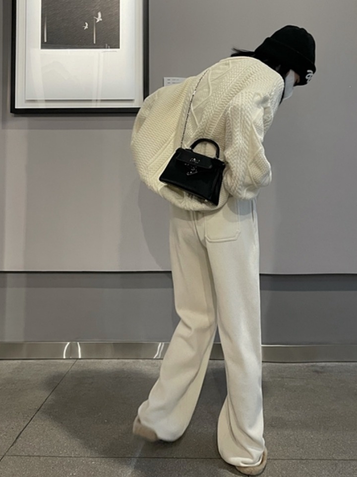 一上身就很爱这条啦~非常滴帅气,利落又时髦。 对比传统西装面料,这种针织的穿起来更自在舒服。 裤型超级显瘦!尤其下半身有点肉的妞更是,比如平时这种利落西装裤蛮挑身材滴。