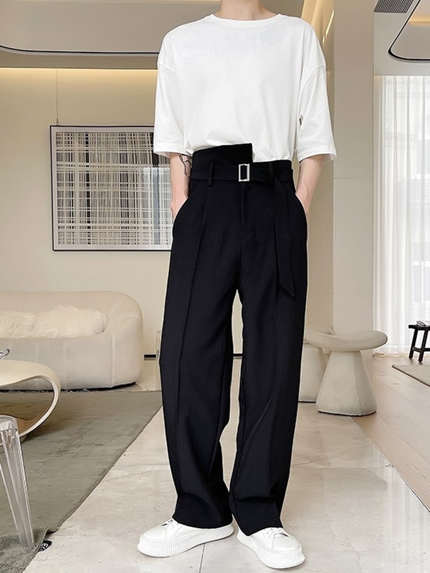 裤子上面中折线的设计,让整条裤子更有立体感,还完美的拉长了身高比例,日常无论搭配小白鞋还是小皮鞋,都简单但不失高级感。