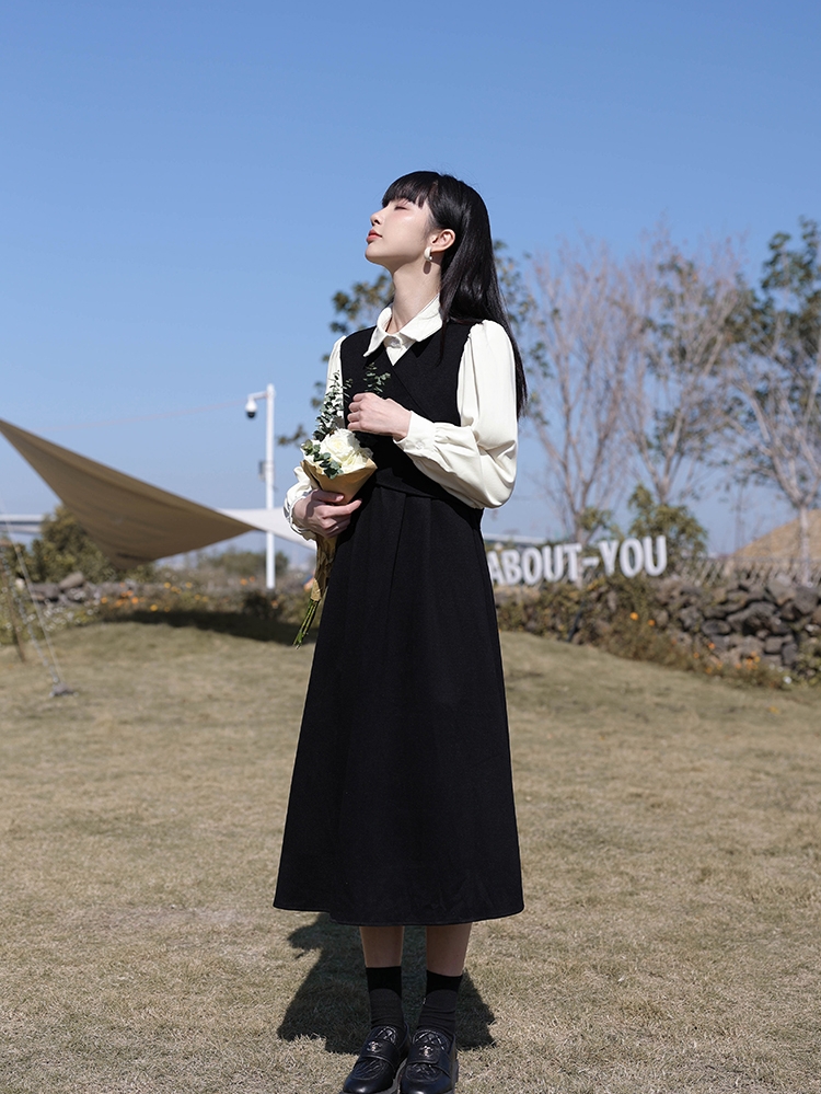 衬衫和背心连衣裙的假两件拼接设计,经典耐看又有洋气,一件就可以直接出门,不用为搭配烦恼了,真的是懒人福音。