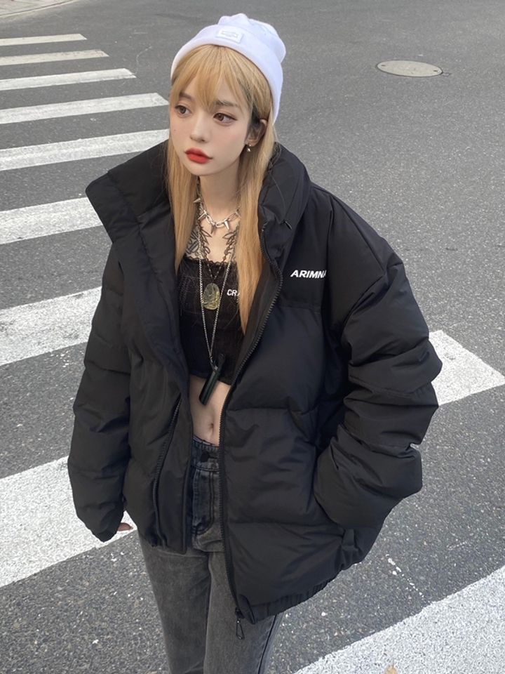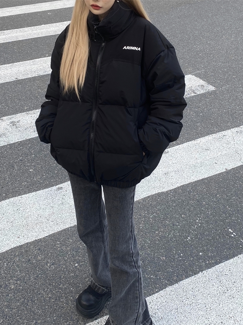 这款今年非常流行面包服版型的羽绒服,包容性强,穿着又舒适。加上纯黑色的颜色显瘦而且百搭,加上小立领的设计更显精神,纯黑色款利落霸气。