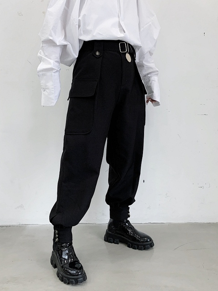 工装范的垮裤设计,痞气潮感烘托而成,上宽下窄,挡不住的运动潮酷感,大口袋工包装饰逼格超脱,偏灰的黑色也是不走寻常路的表现。