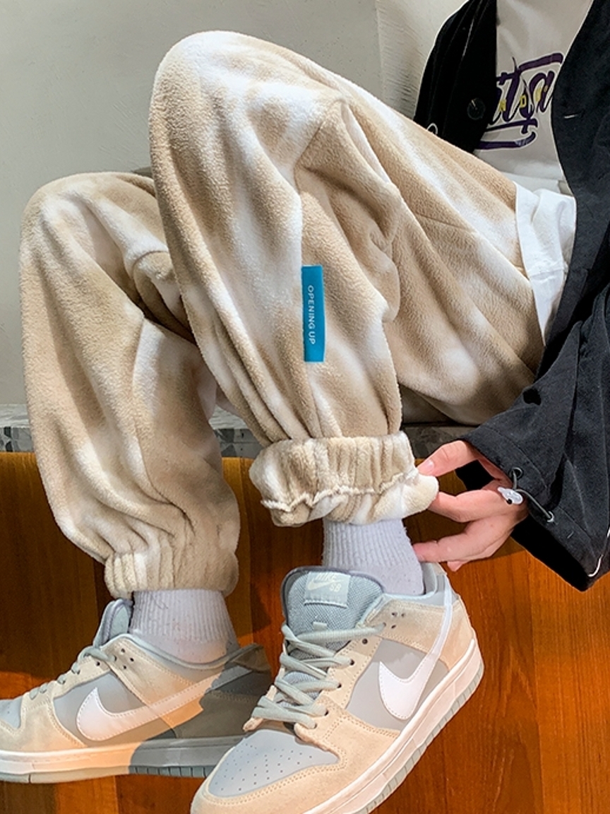 想要被温暖随时包围,那么这款羊羔毛裤子就是个不错的选择,休闲款式的裤身搭配上扎染的设计,凸显造型感之余,还显得很个性。