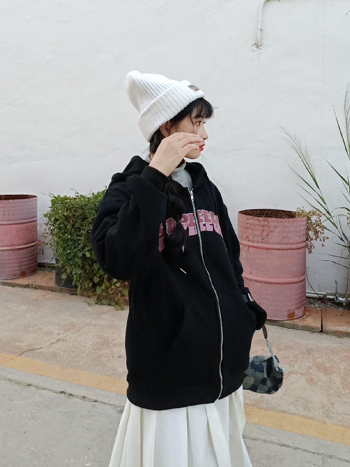 质量超好 是不会起球的那种布料 帽子也是双层的 最最主要的是快递真的超快 而且印花很精致超级显瘦啊幻影字母炒鸡好看的太美了买的加绒的 最近降温了,穿着它刚刚好 面料超级显瘦啊, 喜欢宽松的