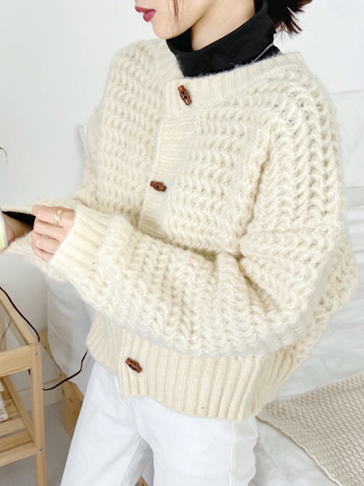 宽松垮大的衣服,粗线条的组合却编织出精细感,复古纯色针织开衫外套,看着是非常的松垮的衣服,这件衣服的粗线条的组合,确编织出了精细感,显得十分的纤瘦。