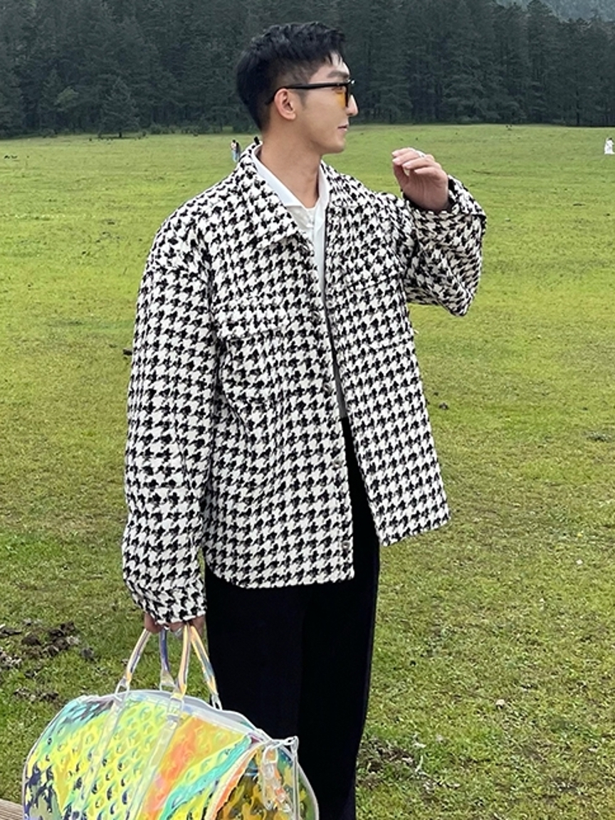 经典的千鸟格格纹,上身更加的显瘦,短款休闲版型,完全不挑身高,不挑身材,谁都能够轻松驾驭。