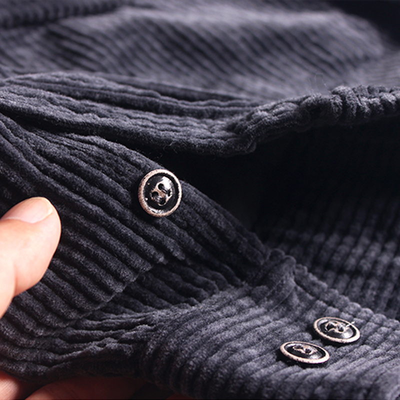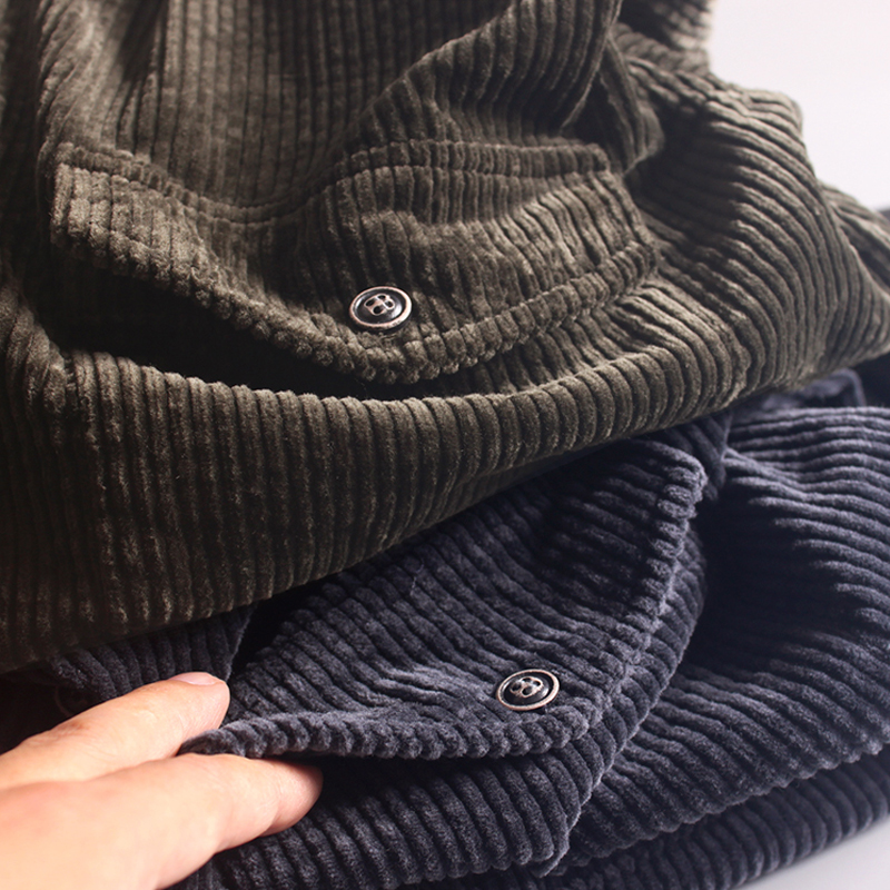 采用灯芯绒面料,触感细腻柔软,上身舒适保暖,复古条纹元素,增添复古气息。
