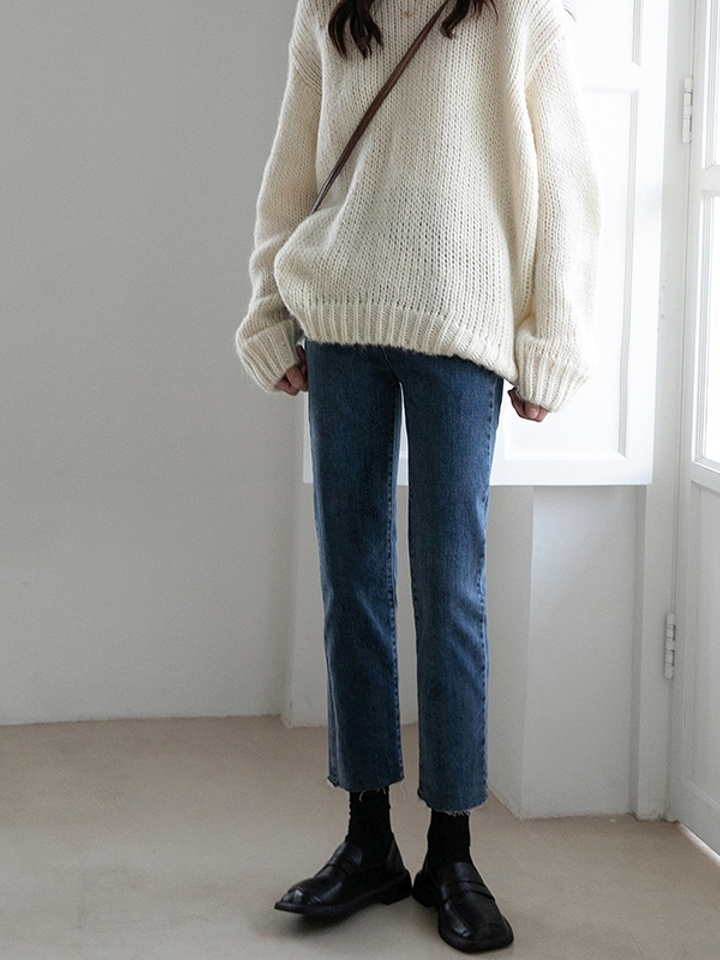 大概是复古风返潮,直筒裤就顺当的出现了。略微修身的版型真是绝了,把腿部曲线修直了不说,还能实力显瘦。配合怀旧的情愫,采用有点做旧的牛仔布料,自我的率真个性和裤脚撕边结合的恰到好处。