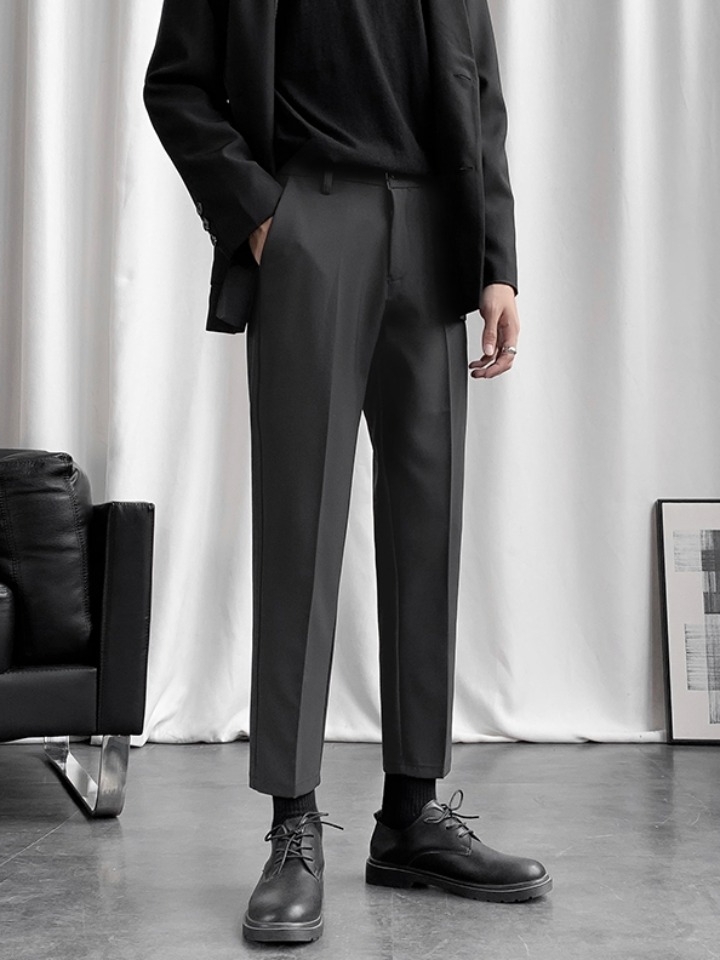 小休闲的款式,不会很宽松,略松的版型,特别显瘦! 面料也是非常的顺滑,九分的长度,非常适合春天穿。廓形极佳,上身挺拔有型。