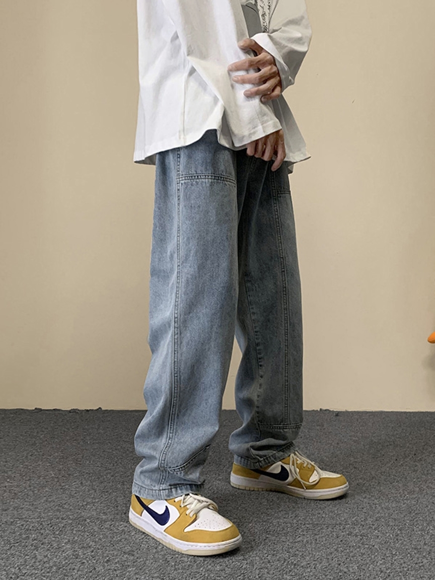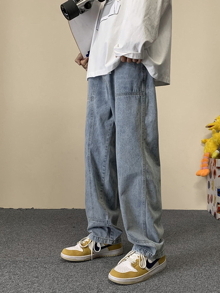 牛仔面料也比较的柔软,在日常可以上搭一件宽松T恤,下搭一双黄色板鞋,很有青春大男孩的即视感。