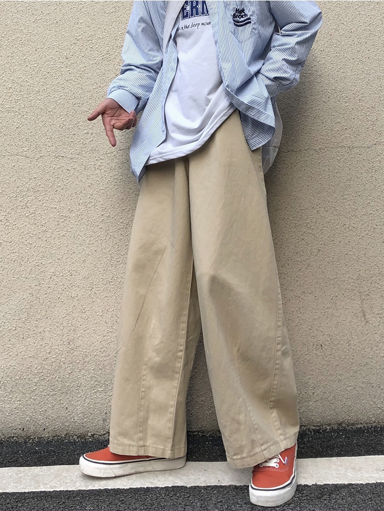 裤子的垂坠感特别棒,上身超级有型,在日常可以上搭一件蓝色衬衫,下搭一双橘色板鞋,妥妥的日系复古潮男即视感。