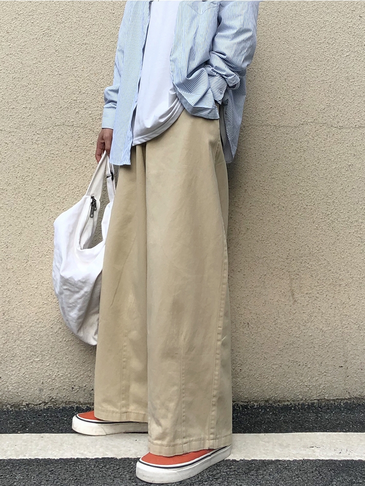 裤身侧边斜插口袋设计真的很经典,特别耐看不易过时,整条裤子没有过多的装饰,反而显得很有简约的日系风。