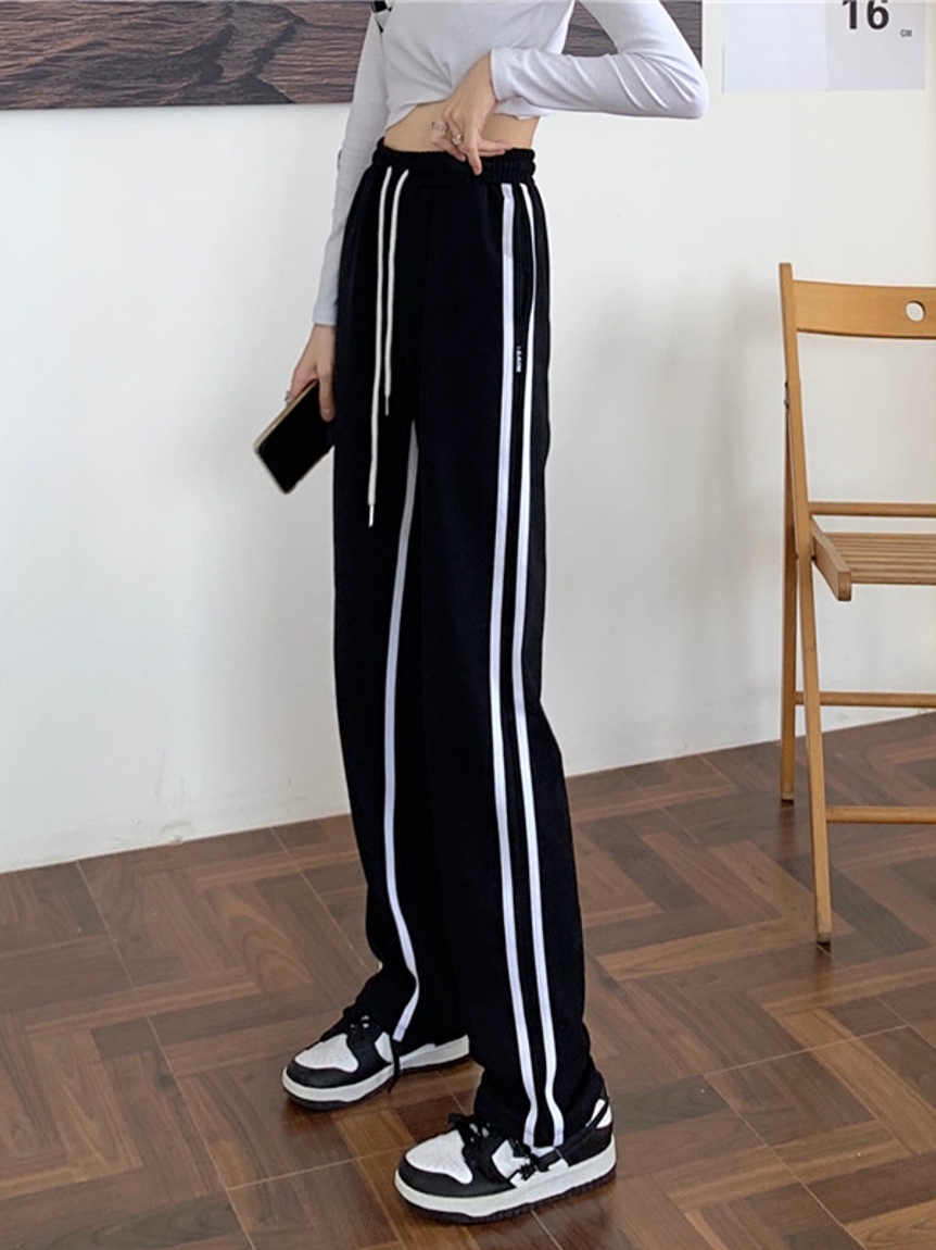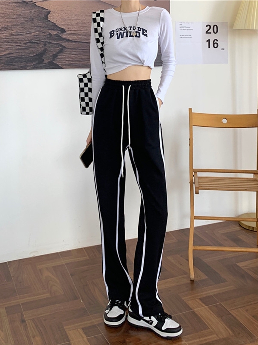 松紧腰的设计,弹性很大,包容各种身材,裤身的撞色条纹,显得很是有个性,同时又有显瘦的作用。