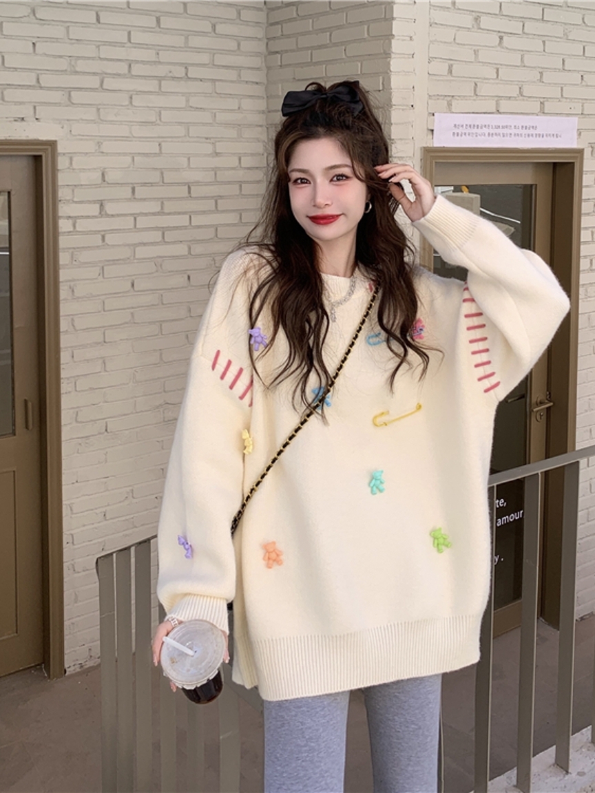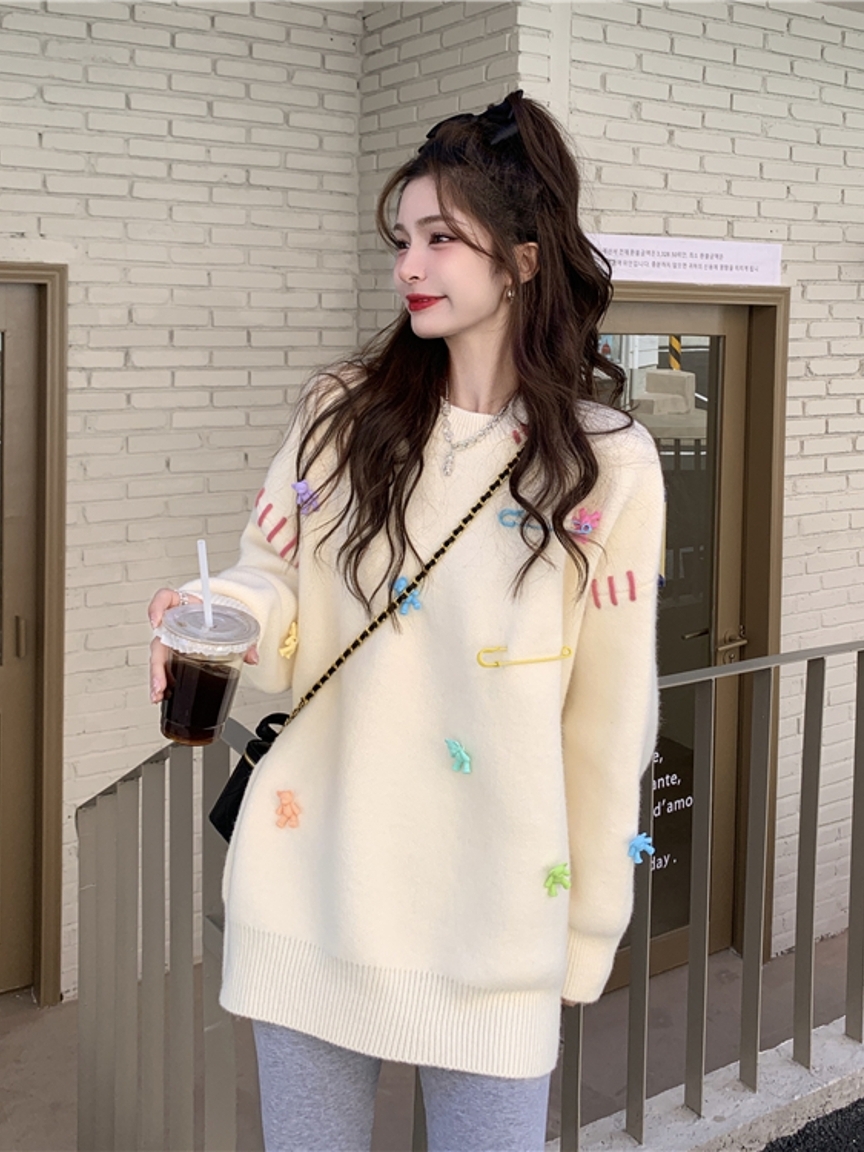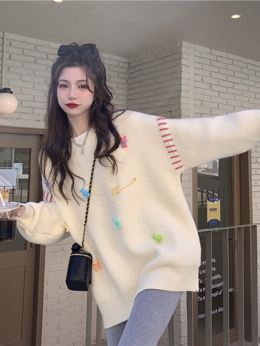 这是一款慵懒风的套头毛衣,经典的圆领设计,很好的修饰了女性的脖颈线条,显得很是婉约大气,同时,让穿脱变得很方便。