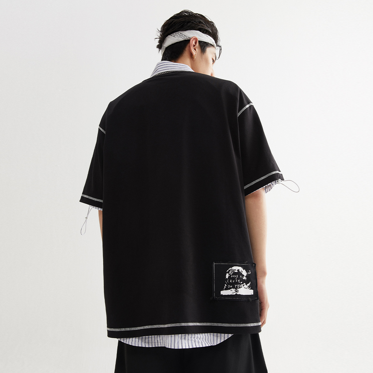 采用了经典的圆领设计,穿着舒适,不易变形,宽松的版型,不挑身材,上身效果很好,搭配牛仔裤或者短裤都很好看。