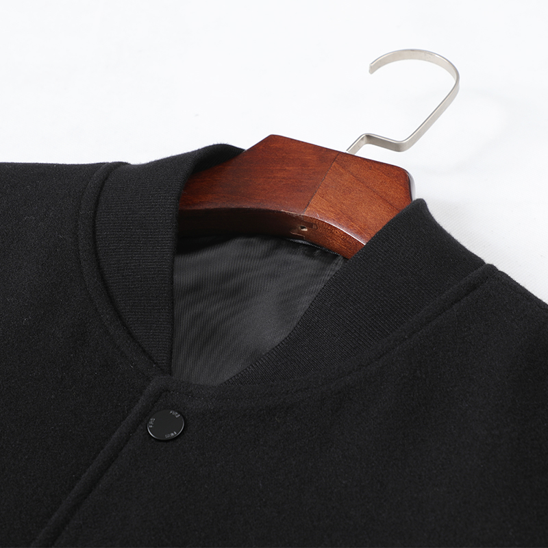 精选优质的绵羊毛面料制成,手感细腻顺滑,带来良好的保暖性。棒球领的设计,贴合颈部曲线。
