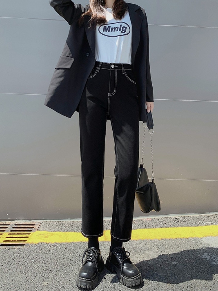 牛仔裤一直以来都是不可磨灭的经典,就像是时尚界的常青藤一样,有着屹立不倒的本身,裤脚的不规则裁剪搭配毛边的点缀,不小心就把不羁的小个性给展露出来了,高腰加九分特别显腿长