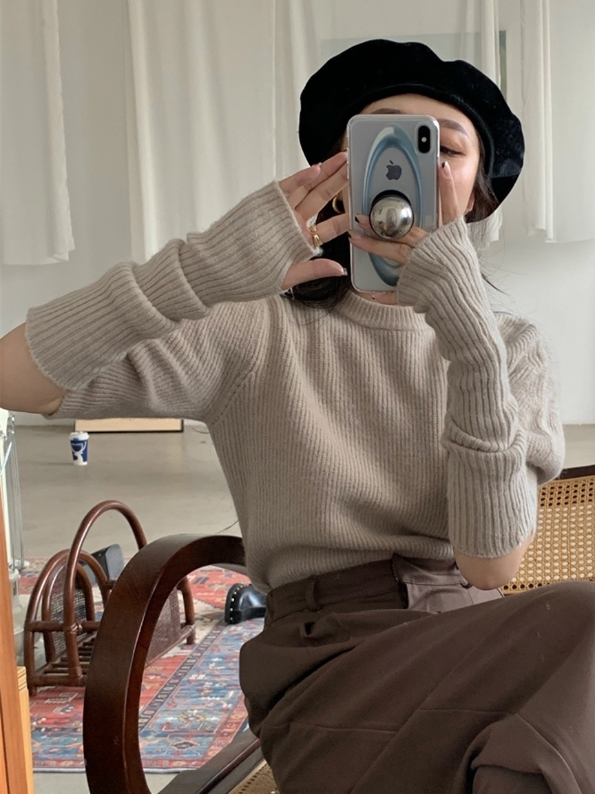 棕色调的衣身,穿着不挑人,不同肤色的妹纸都能驾驭,半高领的款式,贴合脖颈线条,带来不错的保暖效果。