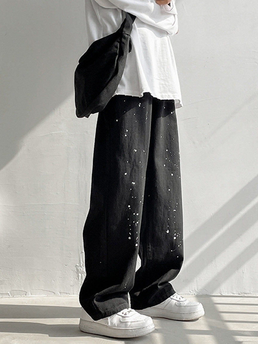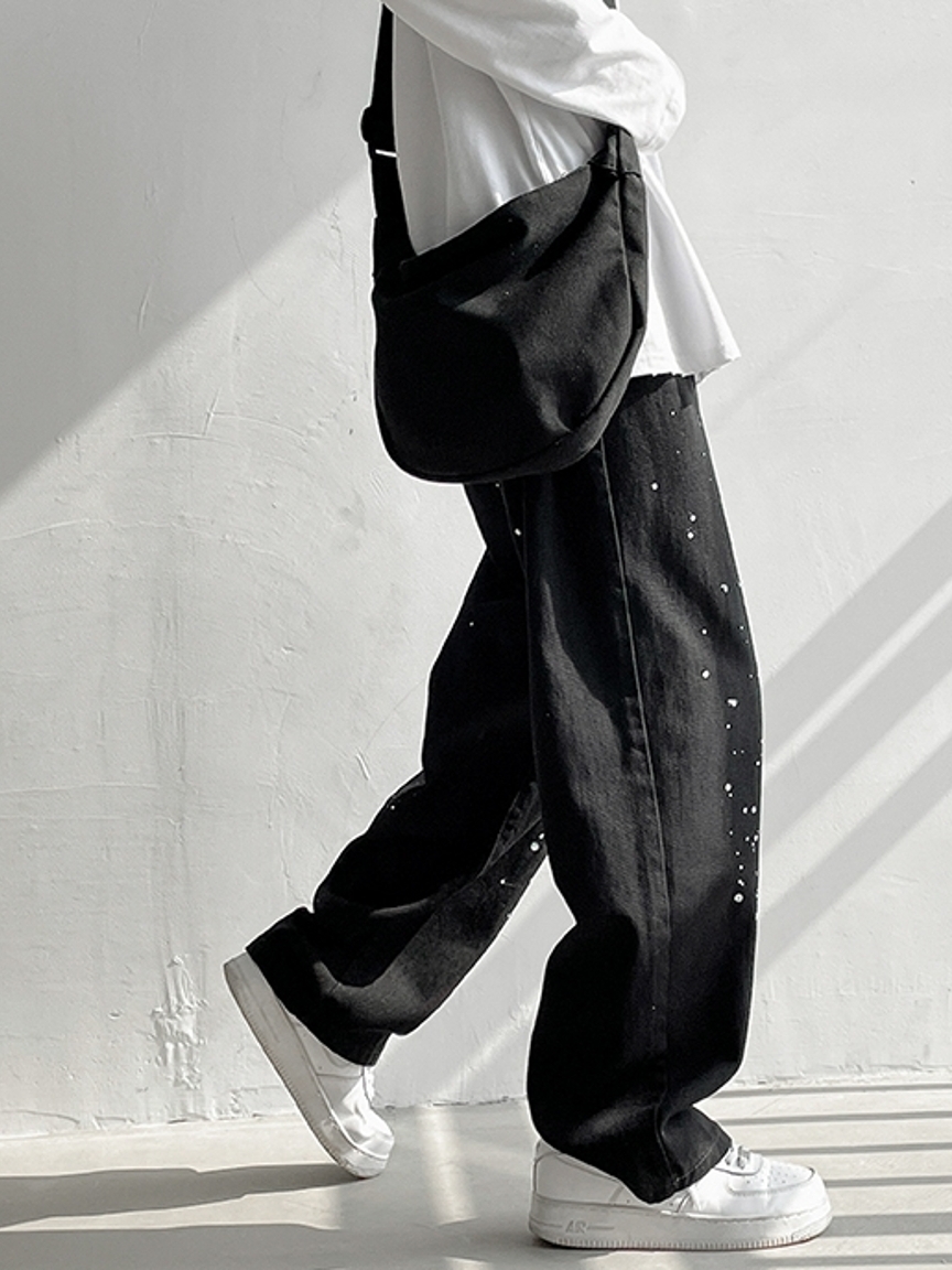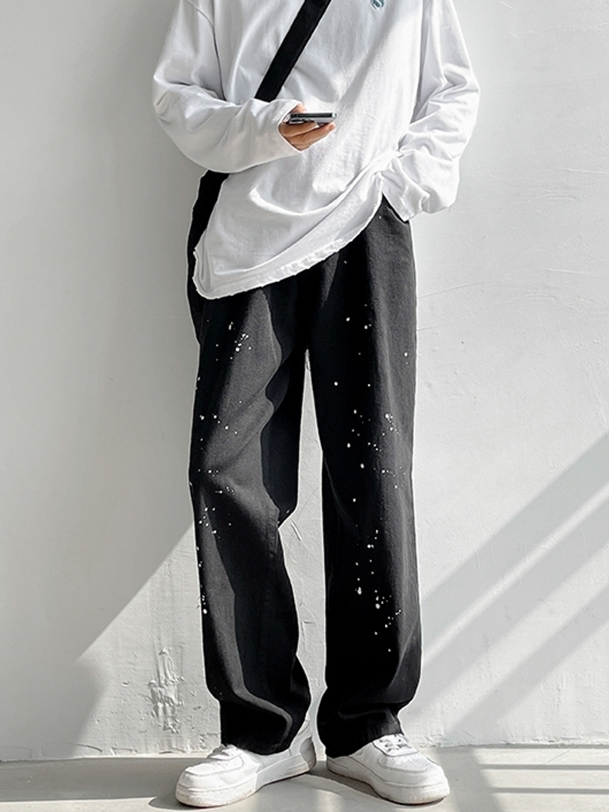 潮男必备一条富有个性的牛仔裤,这条牛仔裤的泼墨设计,让整体的风格高级很多,穿上身就有浓郁的潮酷感。