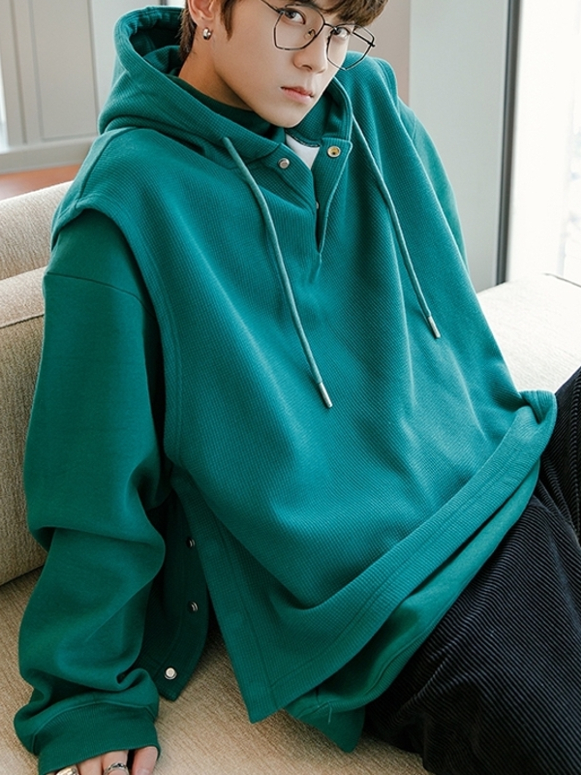 这款卫衣也太赞了吧!连帽的版型让在保暖的同时又具有不错的减龄效果,打造出阳光青春的气息。而两件套的设计则创意十足,呈现出阳光时髦的层次感。
