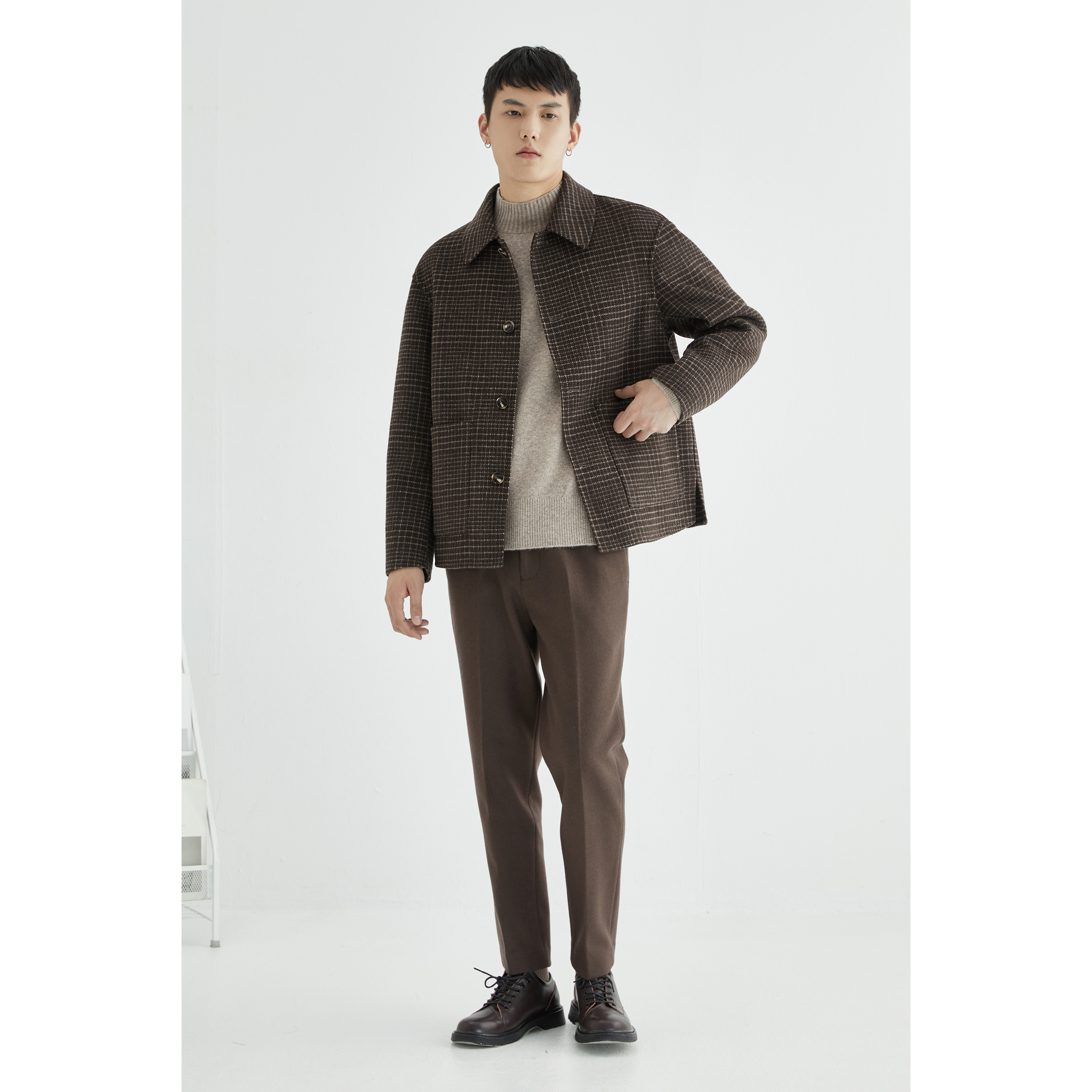 这款外套采用了羊毛混纺的面料,手感柔软舒适,保暖性好,搭配上经典的翻领设计,彰显男士的干练气质,宽松的版型,穿着舒适自在,上身效果很好。