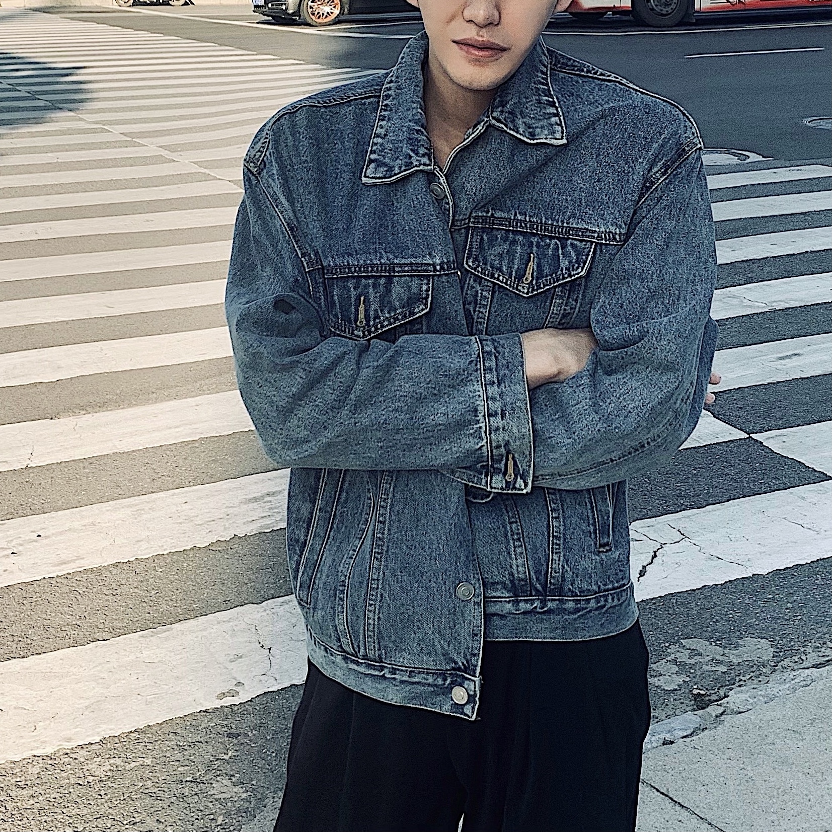 牛仔夹克采用了牛仔面料,手感柔软,穿着舒适,经典的翻领设计,修饰颈部线条,宽松的版型,不挑身材,上身效果很好。
