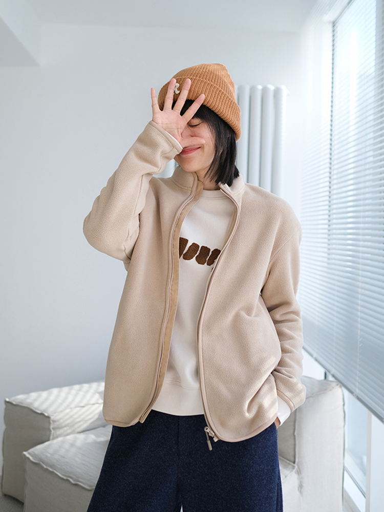 这款茄克采用了米白色进行渲染,同时辅以领口剪裁设计,整体舒适贴合颈部,穿着温暖,品质出众,非常适合像我这样的怕冷星人。
