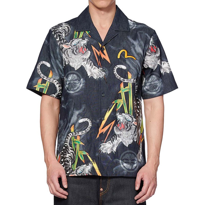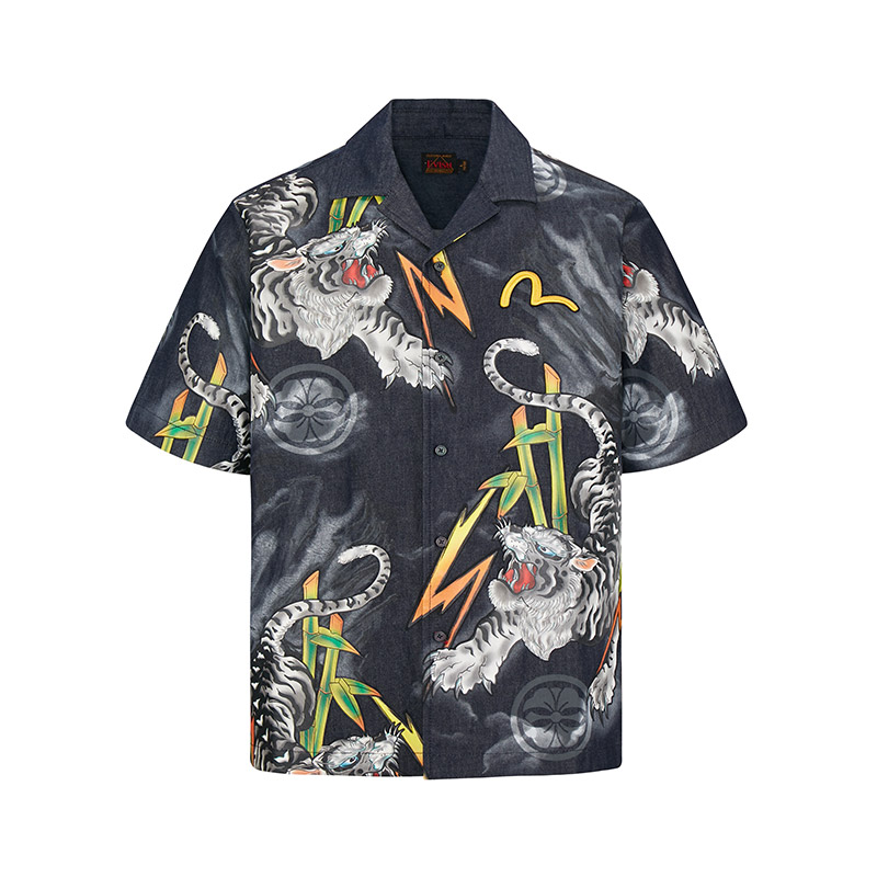 Evisu带来的这款牛仔衬衫,设计师以蓝色为主调渲染,展现干净清爽的氛围。