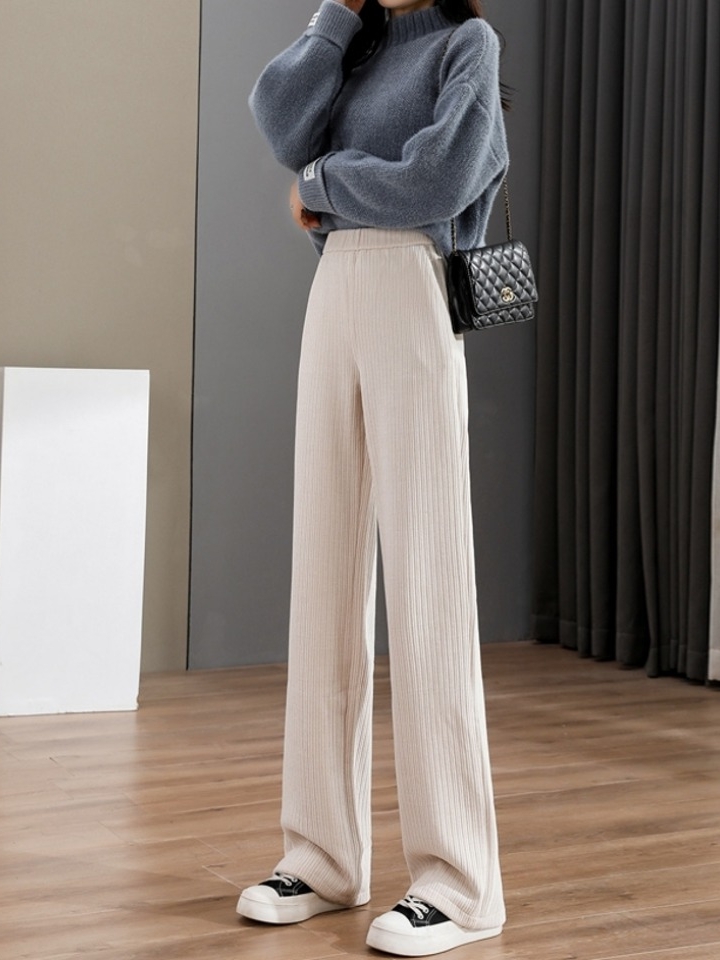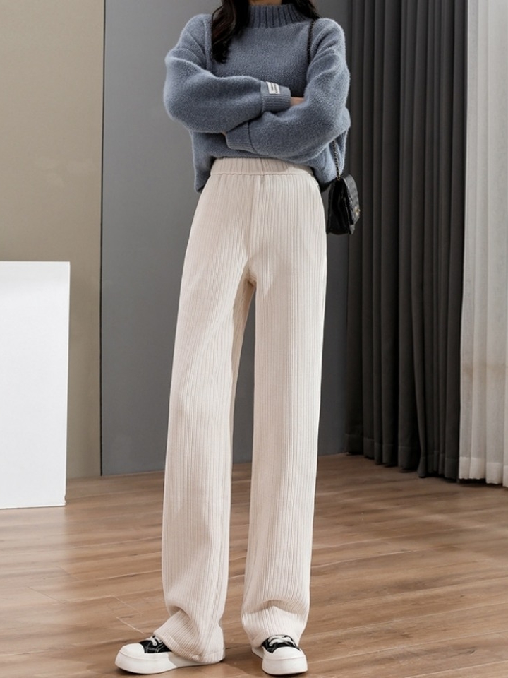 纯色色调搭配,清新自然,不会显得繁琐。宽松直筒版型,不挑身材,遮肉显瘦,修饰腿部线条。加绒的设计,保暖性好,带来温暖的穿着体验。