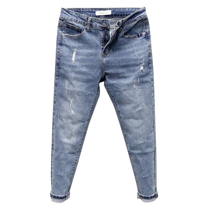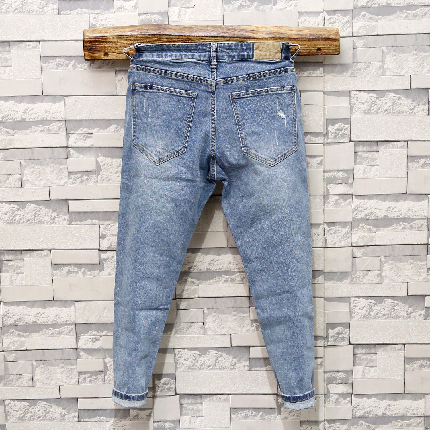 这款牛仔裤采用了水洗工艺,手感柔软,穿着舒适,修身的版型,上身效果很好,裤脚的毛边设计,更显时尚潮流,搭配一件T恤,就能轻松驾驭。