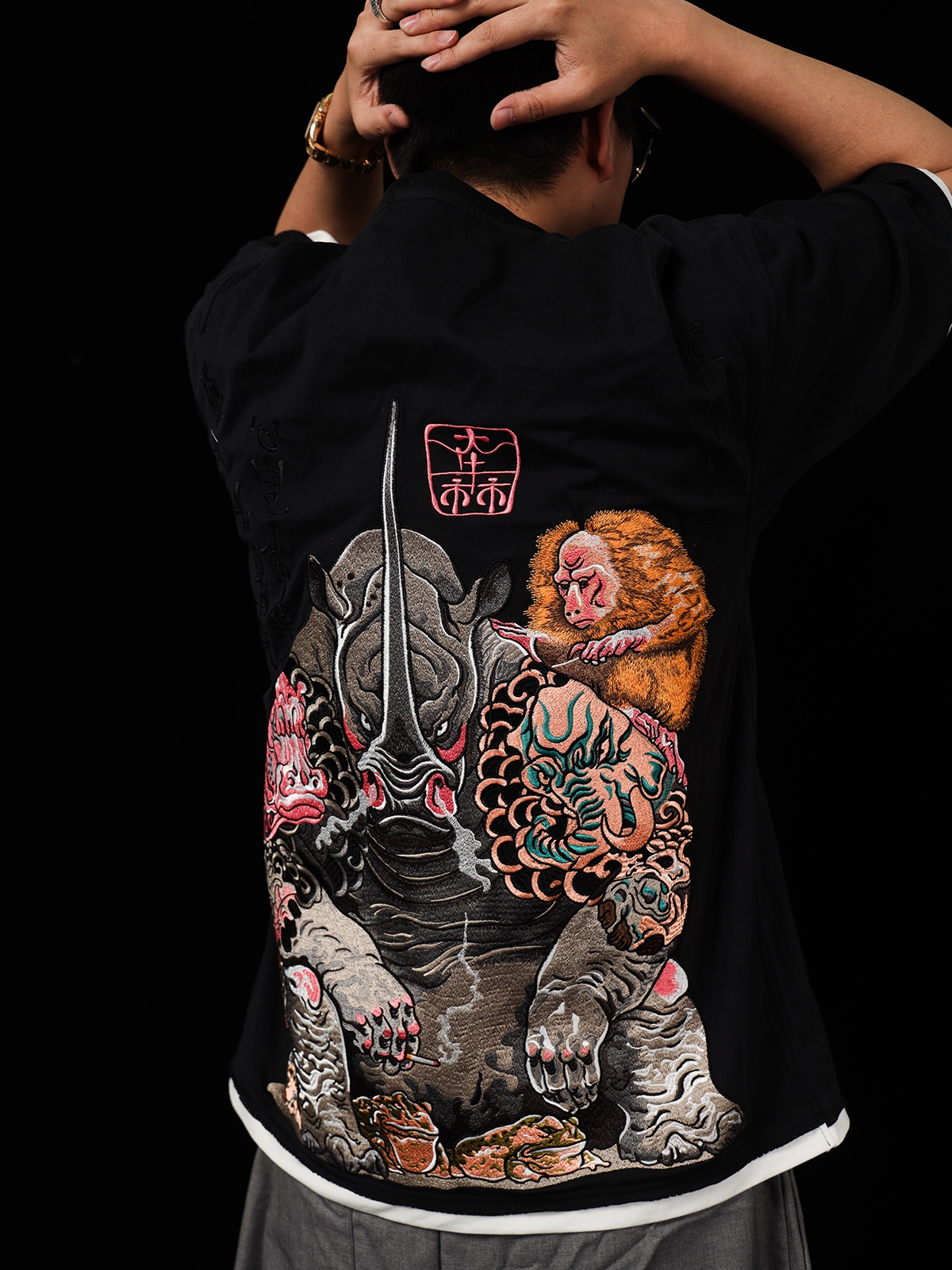 胸前的字母刺绣,彰显个性,宽松的版型,穿着舒适自在。