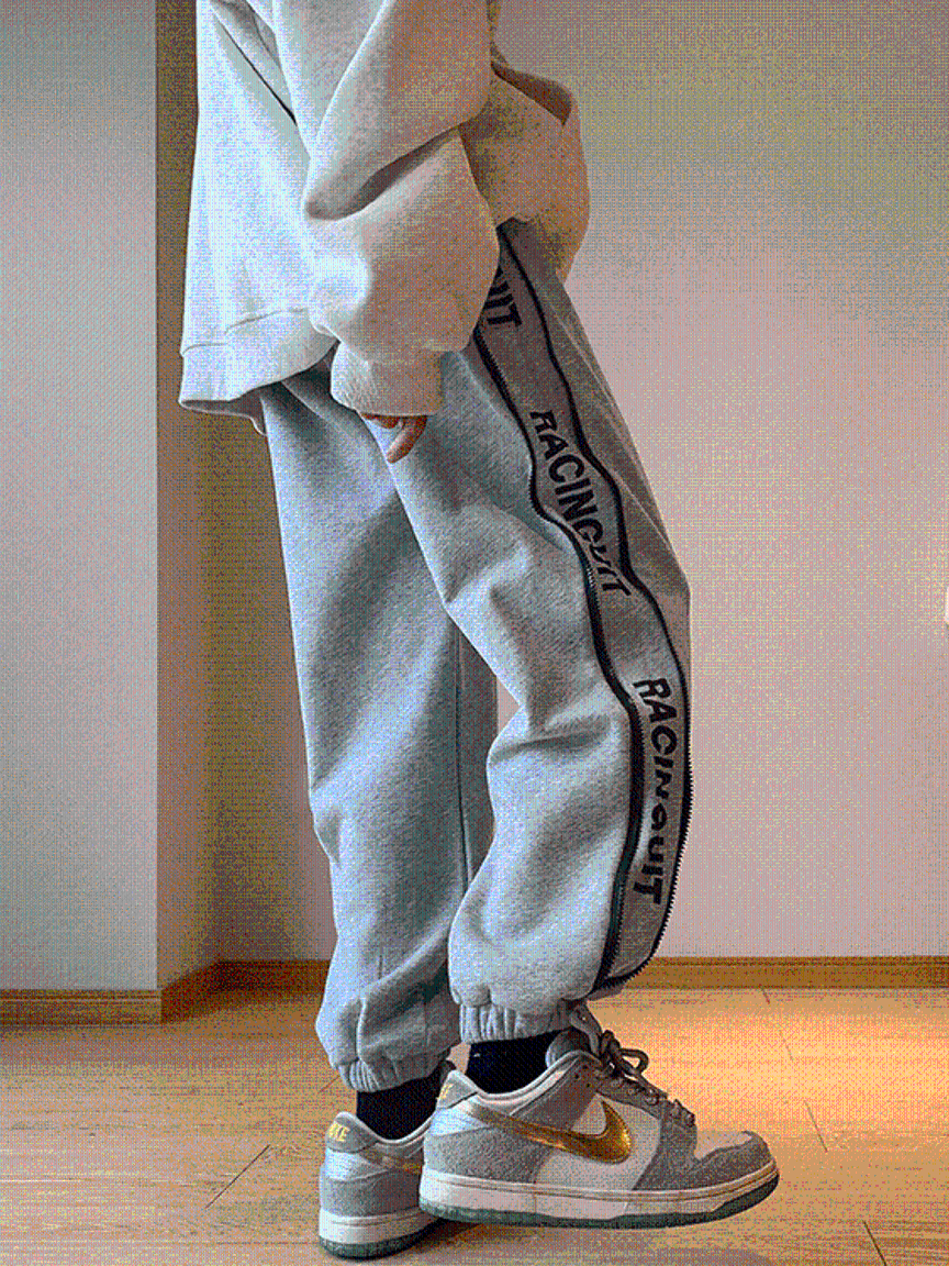 裤身两侧的字母印花和拉链的点缀,是裤子的一大亮点,打破了纯色系的单调,让整体显得更加的时尚。