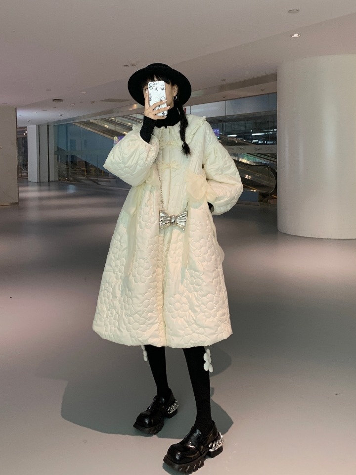 时尚减龄中长款棉衣哦,面料很舒适保暖,门襟拉链方便穿脱,前面两口袋,口袋盖两按扣的哦,连帽设计,帽子上面有抽绳,上面毛毛扣上去的,可拆卸