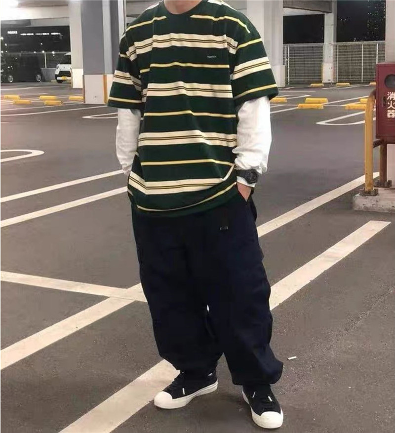 T恤采用了经典的条纹元素,简约大方,宽松的版型,穿着舒适自在。