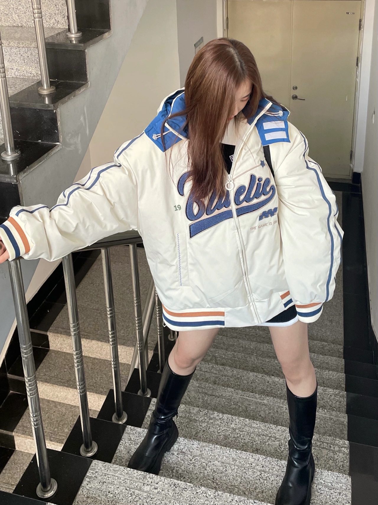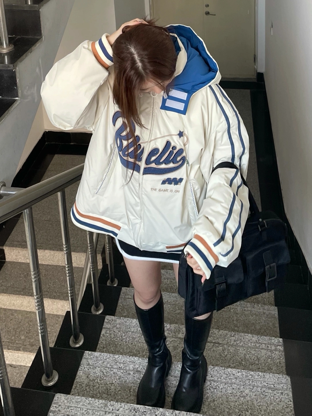 连帽款式显得年轻不老气,还可以随时给头部保暖。宽松的版型,就是内搭穿的多也不会显臃肿,不同的面料拼接,彰显时髦设计风格。胸前字母装饰,凸显神秘感。