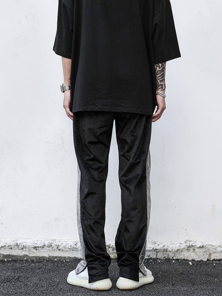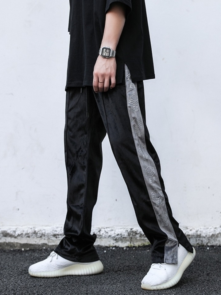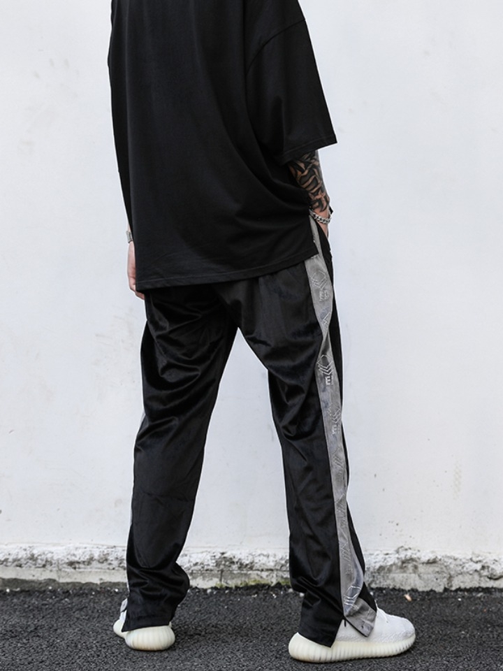 带有嘻哈街头风的一款休闲裤,侧边串标烫钻的装点,巧妙的起到了画龙点睛的效果,使你穿起来个性范儿十足。
