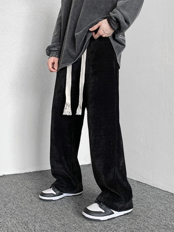 抽绳款式的松紧腰设计,可以更好收束腰身,穿着不挑身材,黑色调的裤身,耐看百搭,长久穿着都不会过时。