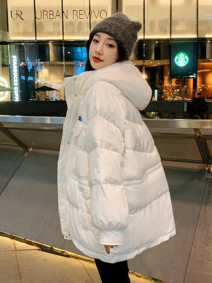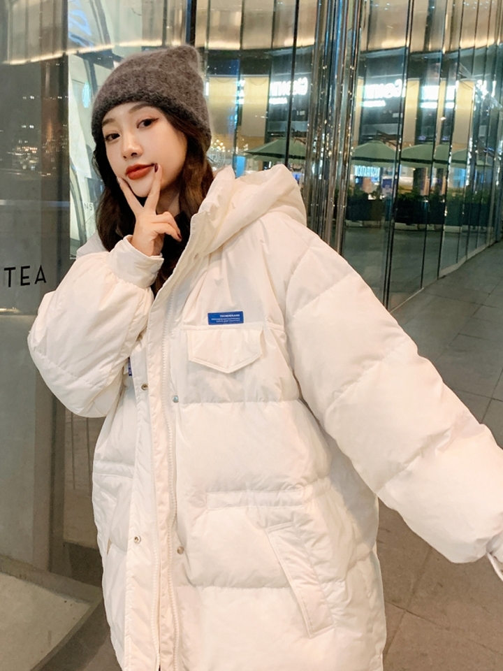 羽绒填充的一款外套,保暖性很不错,连帽设计,休闲感十足,内里搭配毛衣,阔腿裤,毛毛鞋,尽显时尚优雅感。