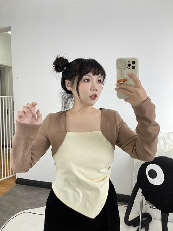 斜肩露肩不规则荷叶边短款上衣,小褶皱处理,独特设计师风格。飘逸女性味十足。是一款融入设计师概念的小众单品