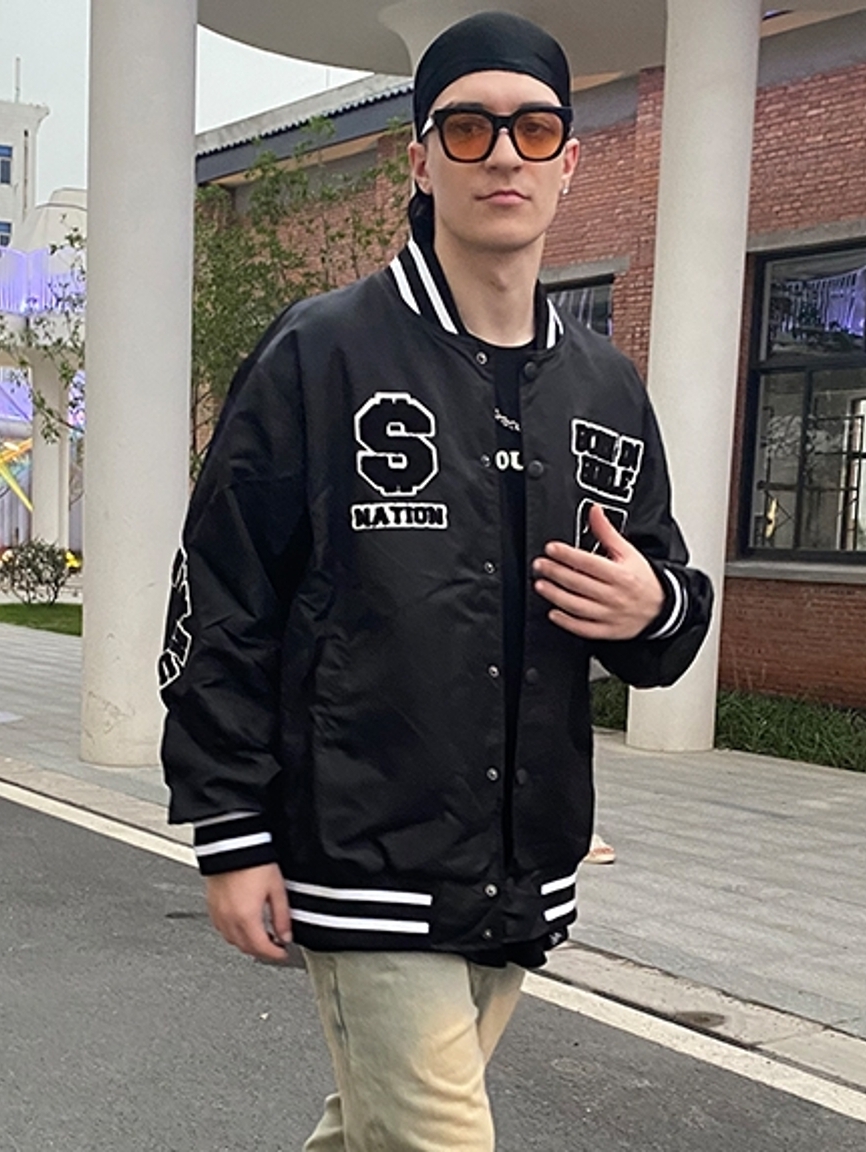 精选挺括有型的太空棉面料,穿着有垂感上身效果非常高端,衣身独特的印花设计,有非常好的夺目吸睛的作用,棒球服的针织领型非常富有年轻感,非常减龄的一款印花棒球服
