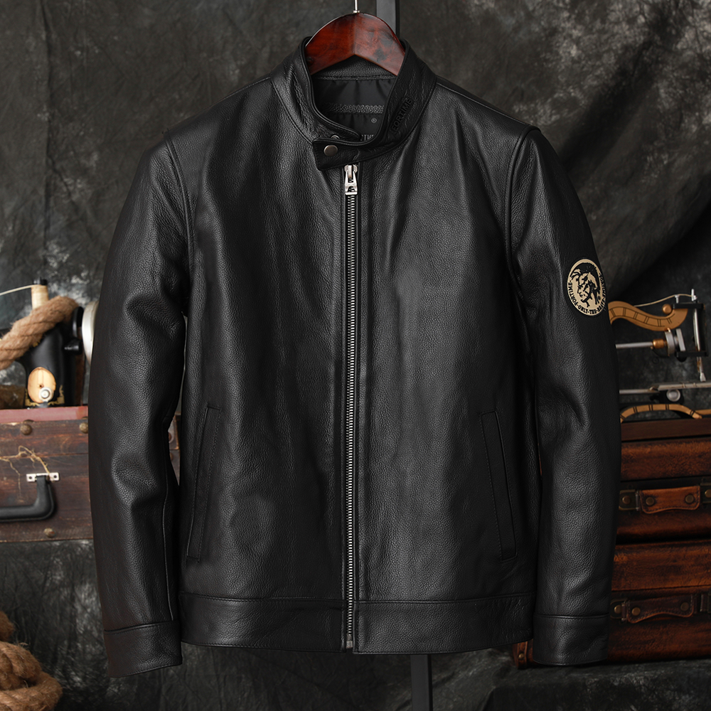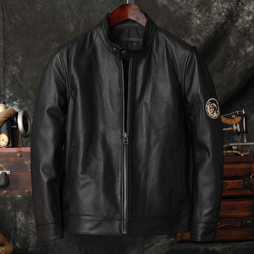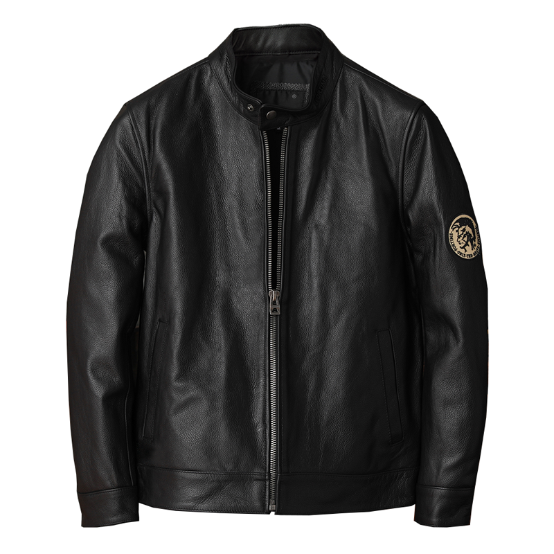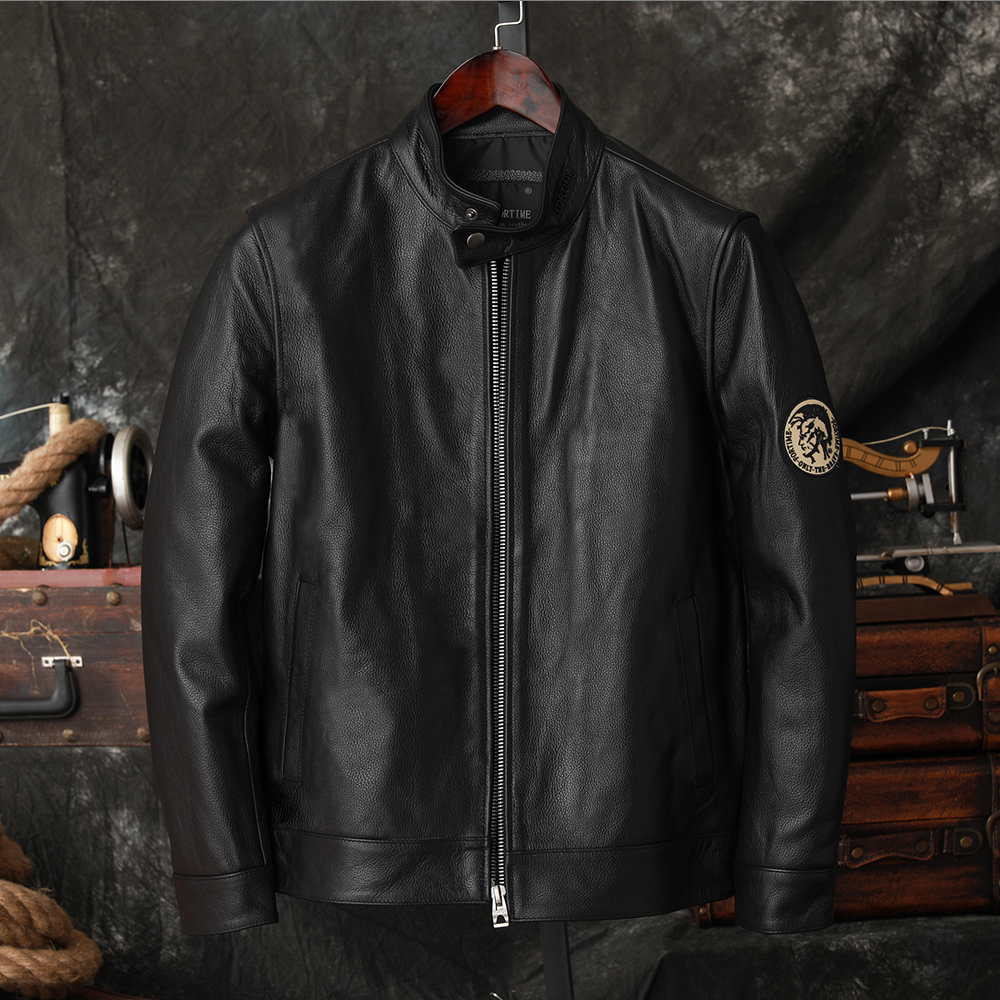真皮材质,穿着舒适透气,短款外套,拉长身材比例,立领设计,彰显男士魅力。