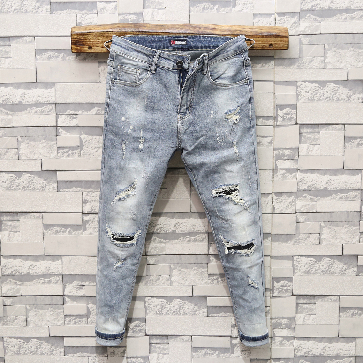 修身版型,凸显身材曲线,宽松裤型,穿着舒适自在,破洞设计,彰显不羁个性,牛仔裤,穿着舒适不紧绷。