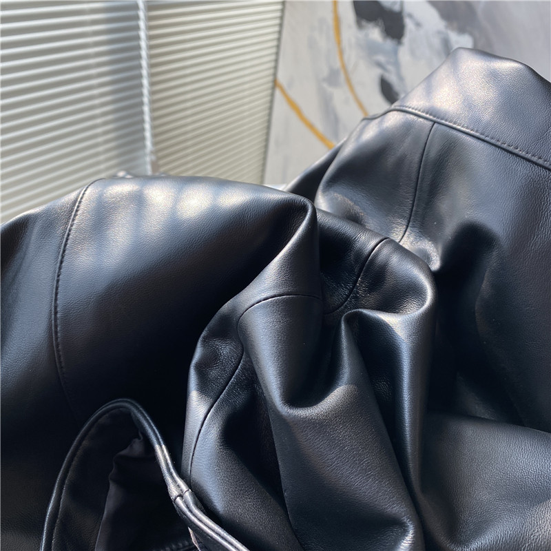 精选优质面料,皮质柔软细腻,经典翻领设计,简约大方,修身版型,凸显身材曲线,短款外套,拉长身材比例。