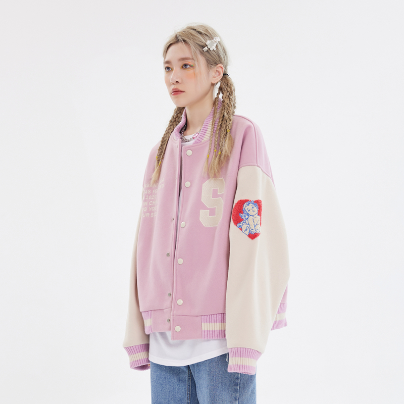 这款外套采用了经典的棒球领设计,搭配上撞色的字母印花,让整体看起来更加的时尚,而且还能很好的修饰脸型。