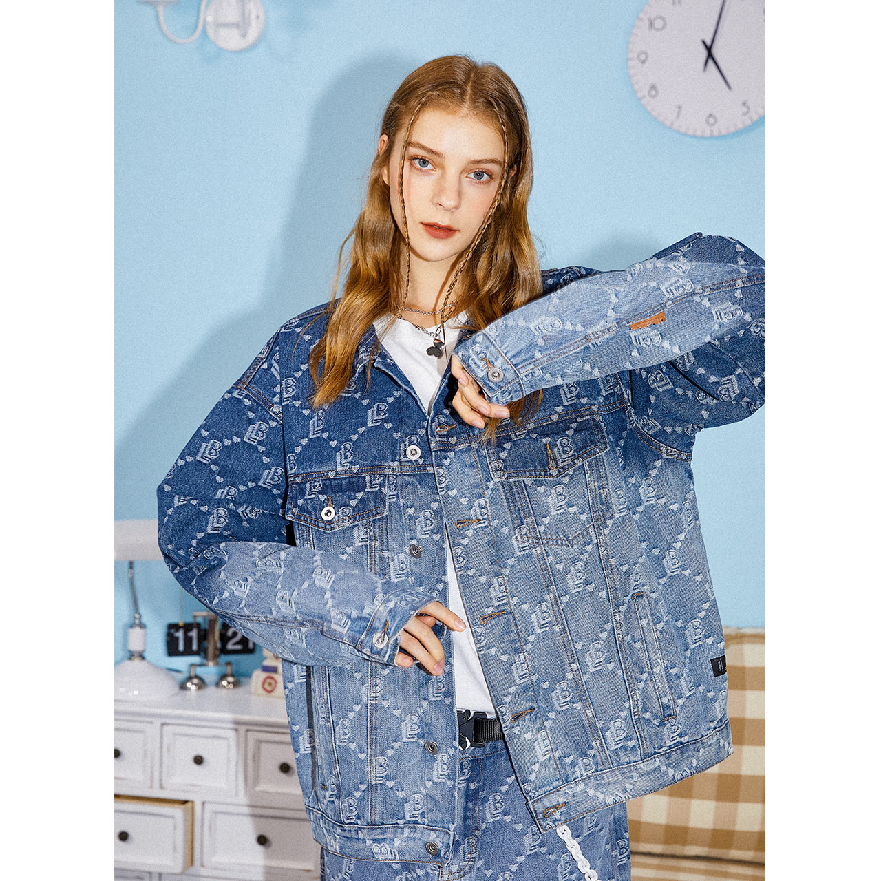 宽松版型的牛仔外套,穿在身上展现出潮流的气息,下半身搭配一条修身款式的休闲裤进行搭配,整体展现出男性的时尚与潮流的魅力。