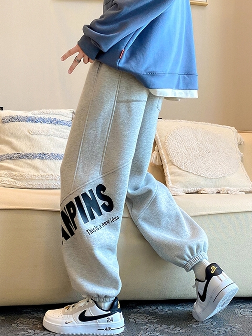 膝盖处选用大大的字母印花图案装饰,吸睛率杠杠得。而拼接的酷帅,有效从视觉达到显瘦的效果。