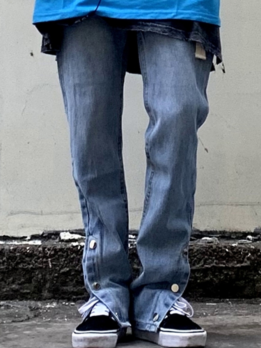 裤腿处的开叉和纽扣的元素,增加时尚潮流气息,还能拉长腿部线条,轻松穿出不同的造型感,直筒的剪裁,对于微胖MM很友好。