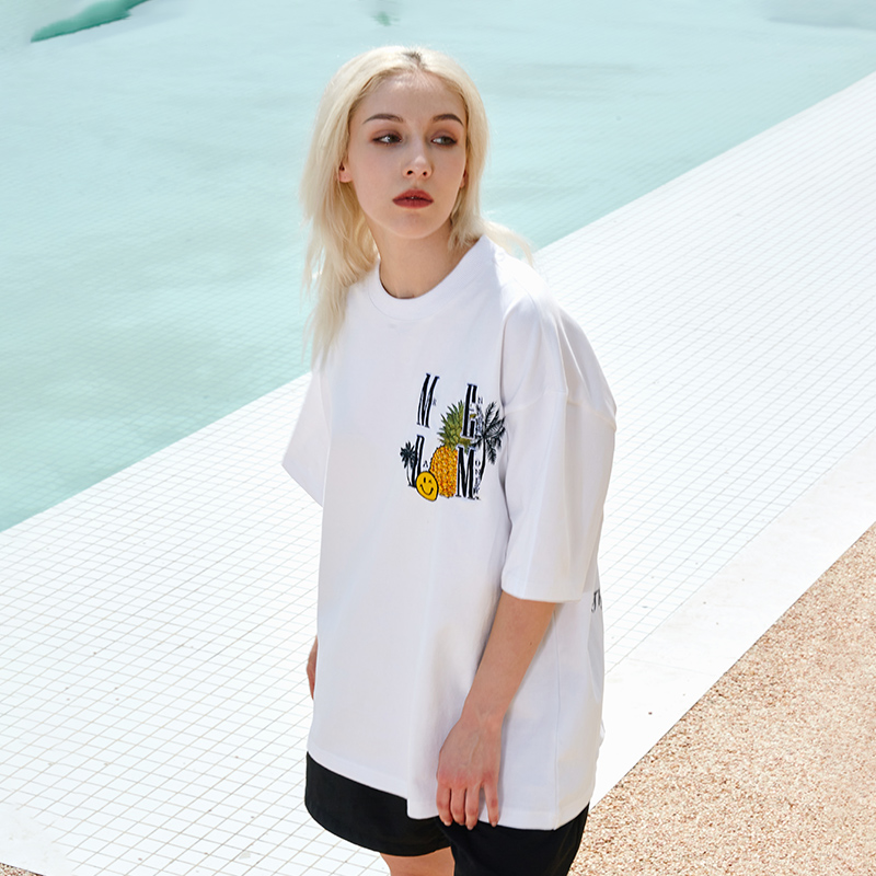 这款T恤采用了经典的圆领设计,穿着舒适,不易变形,胸前的字母印花,充满了青春活力,宽松的版型,上身舒适自在,搭配牛仔裤或者短裤都很好看。