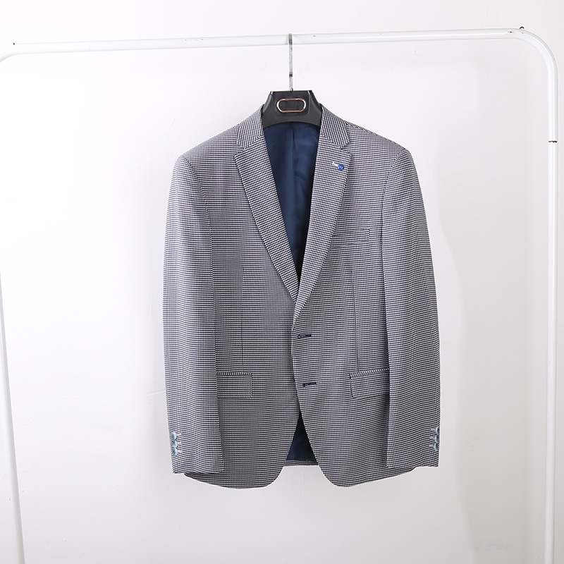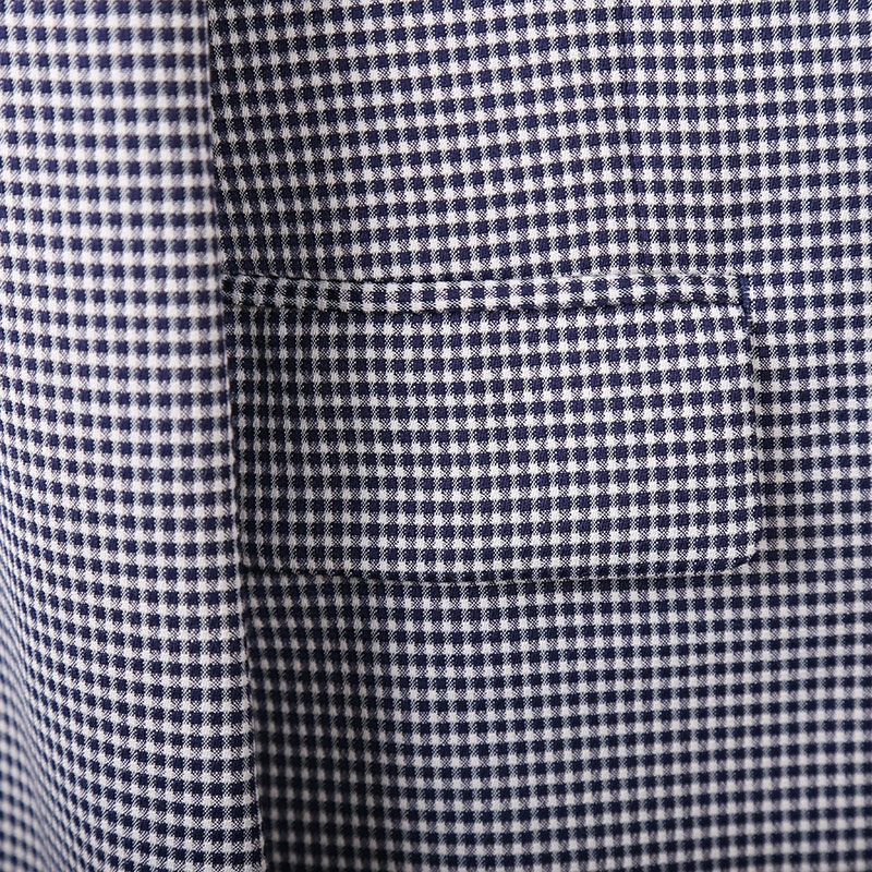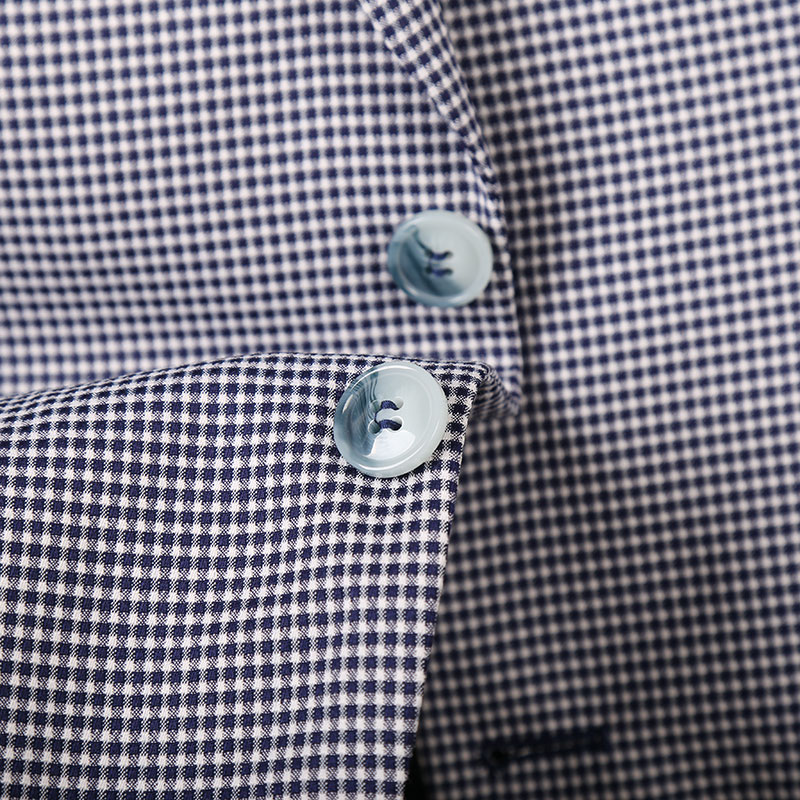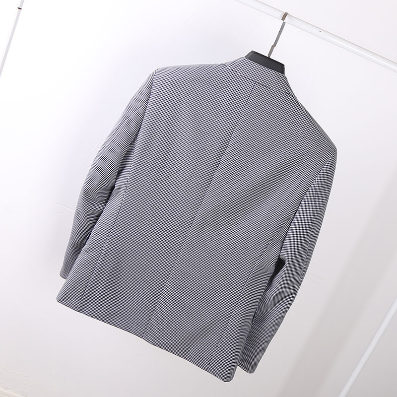 单排扣设计,穿脱更方便,经典格纹元素,复古时尚,修身版型,凸显身材曲线,经典西装领,绅士风十足。